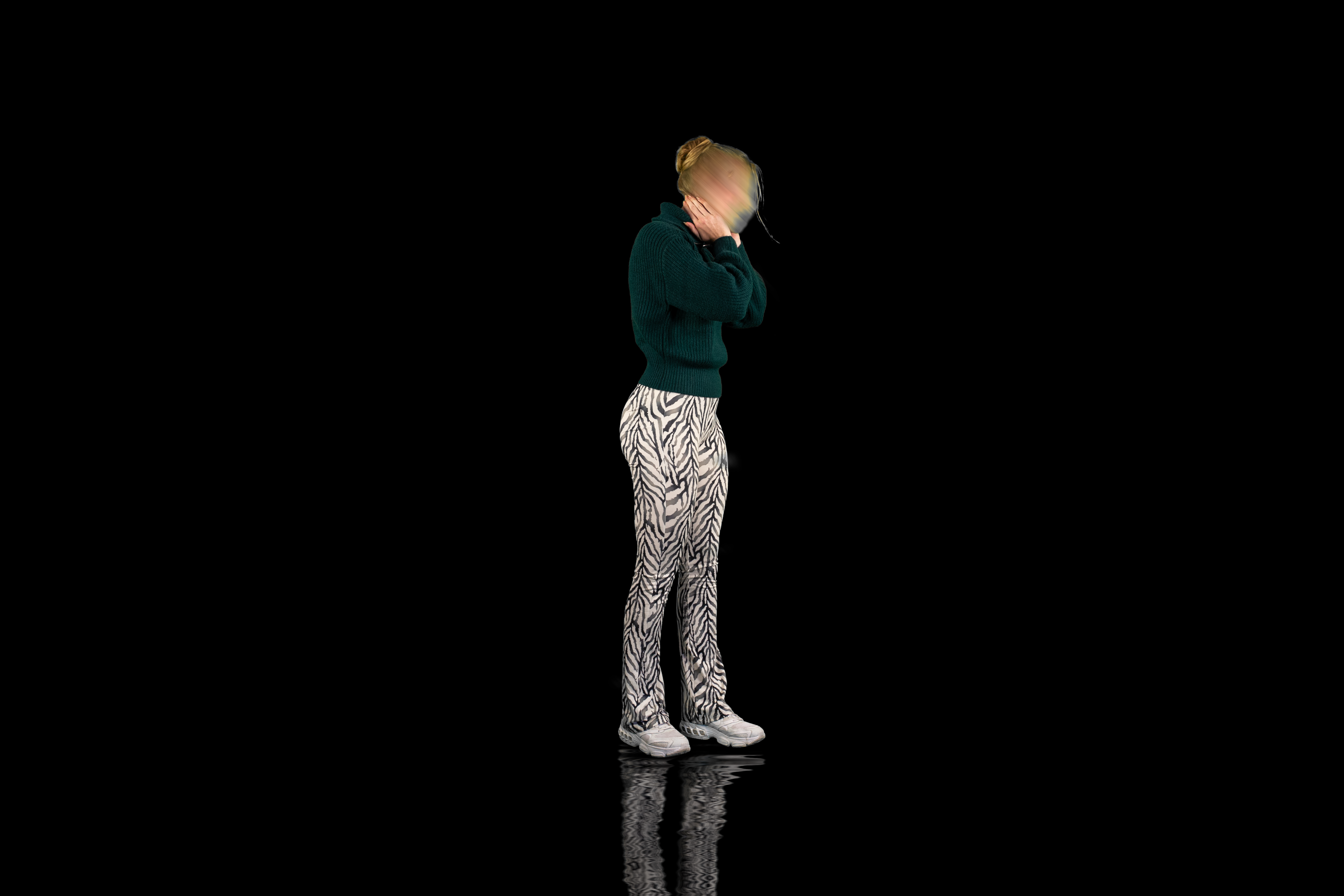 Ayla maakt zich kleiner, houdt haar hoofd naar beneden en slaat de handen voor haar ogen. Het kleiner maken en het in zichzelf keren van de student was een veel voorkomende houding die op verschillende manieren tot uiting kwam bij het aannemen van een pose. De ene student lichtte het toe als ‘vluchten voor de stress’, de ander verklaarde het als het aannemen van een comfortabele houding als reactie op het ervaren gevoel. Zo merkte ik dat ook dezelfde pose op verschillende manieren woorden kreeg en verschillende onderwerpen deed aansnijden in de gesprekken die volgden.