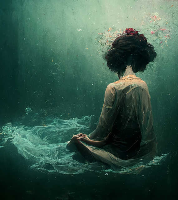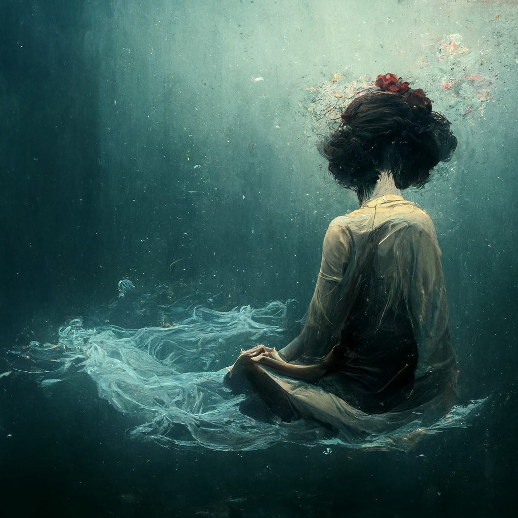 Valerie ervaarde een beklemmend, leeg en angstig gevoel die ze omschreef als het op de bodem van de zee gedrukt worden en niet kunnen bewegen of ademen. Het resulteerde in een AI-beeld waarin ze de complete setting van de vrouw op de afbeelding sterk herkende, maar de afbeelding resoneerde vooral met haar gevoel vanwege de rust en de hoop die ze hierin terugzag. Haar gevoel ‘verschoof’ van het beklemmende gevoel naar een gevoel van acceptatie en rust. “Misschien is het niet altijd erg om even op de bodem te zitten in de leegte, maar is het juist een goed moment om daar gewoon even te zijn.”