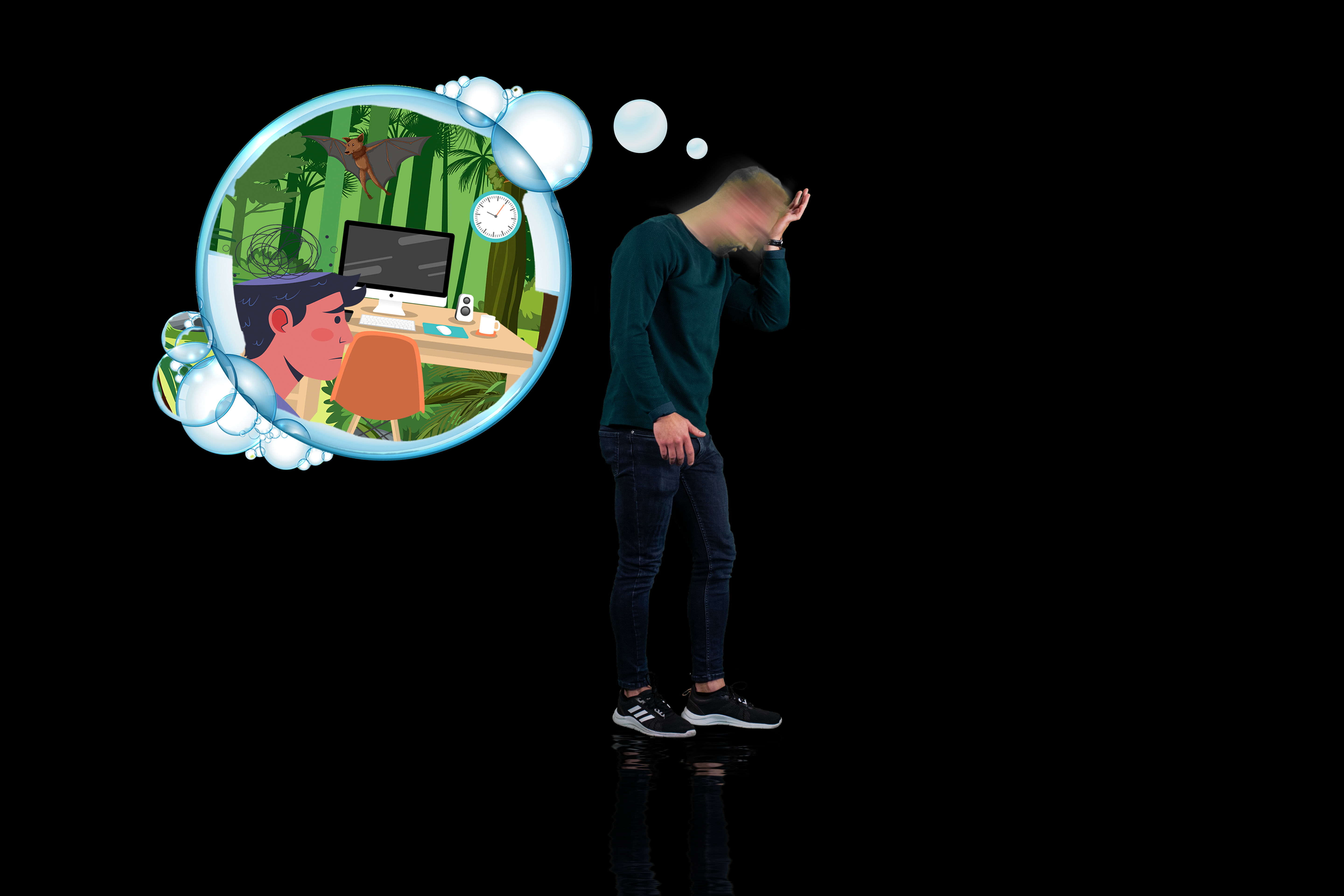 “De druk aan het werk te moeten terwijl de jungle om mij heen me afleidt van wat ik eigenlijk moet doen. Dit zorgt voor chaos in mijn hoofd.”