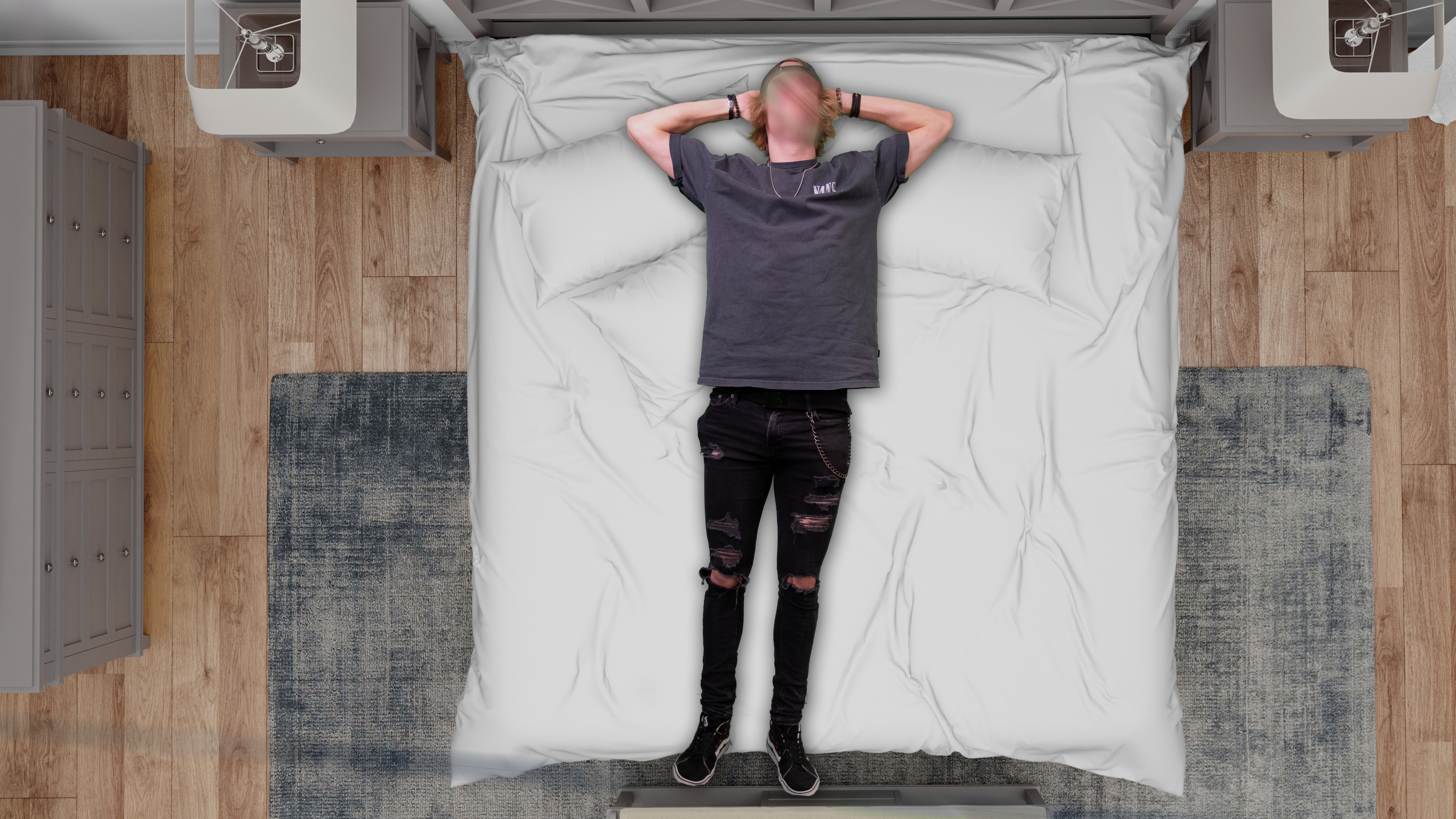 Wetende dat zijn lichaamskennis in zijn armen sterk aanwezig is, houdt Jasper ze hier in de houding die voor hem aangeeft dat hij in zijn optimale staat verkeert. Versterkt door de eigen ontworpen achtergrond heeft hij een voor hem sterk beeld ontworpen die direct het positieve gevoel in hem oproept die hoort bij zijn doeltoestand.